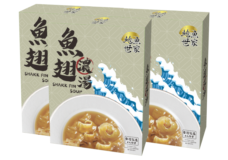 魚翅濃湯由台灣製造,嚴選魚翅、頂湯、竹笙、冬菇等頂級食材,真材實料,加熱即可享用,方便又好味。